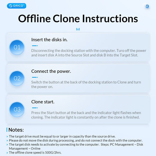 در هنگام استفاده از قابلیت کلون، توجه داشته باشید که هارد دیسکهای مقصد (Target) باید ظرفیتی برابر یا بیشتر از هارد مبدا داشته باشند.
