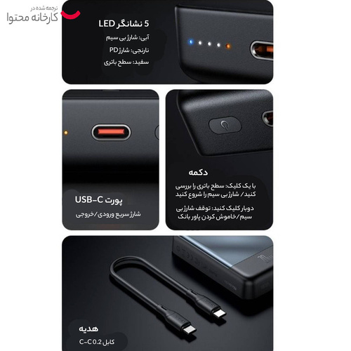 این پاوربانک ظرفیت 10 هزار میلی آمپری داشته و علاوه بر تبلت و گوشی تلفن همراه، آن را به محصولی مناسب برای شارژ هندزفری و ساعت هوشمند شما تبدیل می کند. این پاوربانک دارای گواهیهای FC و CE بوده که نشان از کیفیت بالای آن دارد. مشخصات ورودی خروجی به شرح زیر است: Type-C Input: 5V⎓3A | 9V⎓2.2 A | 12V⎓1.6A Type-C Output: 5V⎓3A | 9V⎓3A | 12V⎓2.5A | 15V⎓2A | 30W Max Wireless: 5W | 7.5W | 10W | 15W ظرفیت واقعی این پاوربانک 10000 میلی آمپر بسته به ولتاژ خروجی دستگاههای شما حدودا در رنج 6000 میلی آمپر خواهد بود. عواملی چون هدر رفت ظرفیت طی فرآیند تبدیل ولتاژ، استفاده از کابل نامناسب، استفاده از گوشی در حین شارژ توسط پاوربانک، باز بودن برنامه های زیاد در پس زمینه گوشی و ... می توانند در از دست رفتن ظرفیت پاوربانک تاثیر گذار باشند. این پاوربانک همچنین از مراجع مدنظر تاییدیه حمل در هواپیما دریافت کرده است. جنس بدنه ی این پاوربانک ساخته شده از پلاستیک ABS و PC بوده که همین امر موجب مقاومت قابل قبولی در برابر گرما و ضربه می شود. پاوربانک مک دودو مدل MC-593 ظرفیت 10000 میلی آمپر ساعت دارای استاندارد زیست محیطی ROHS نیز است؛ یعنی بسته بندی آن از موادی ساخته شده که در محیط زیست قابل بازیافت است. پس اگر به دنبال محصولی با ایمنی و کیفیت بالا هستید، پاوربانک مک دودو مدل MC-593 ظرفیت 10000 میلی آمپر ساعت انتخابی مناسب برای شما خواهد بود.
