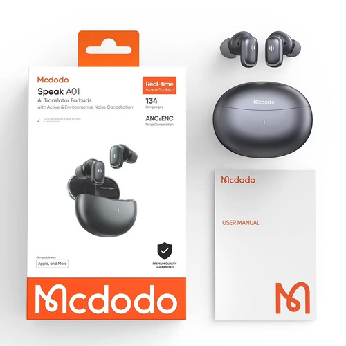 ایرپاد مک دودو مدل HP-822 که با نام Mcdodo Speak A01 AI Translator Earbuds نیز شناخته میشود، ابزاری پیشرفته برای فراتر رفتن از موانع زبانی است. این هدفون بیسیم، ترکیبی از فناوری ترجمه هوش مصنوعی پیشرفته، کیفیت صدای بالا و طراحی ارگونومیک را ارائه میدهد. این ایرپاد میتواند موانع زبانی را از بین ببرد و ارتباطی دوطرفه و بلادرنگ را در 134 زبان مختلف فراهم آورد. ویژگی اصلی ایرپاد مک دودو HP-822 Speak A01، قابلیت ترجمه هوش مصنوعی آن است. این ایرپادها با اتصال به اپلیکیشن اختصاصی “Yue’er”، ترجمه دوطرفه را در 134 زبان مختلف پشتیبانی میکنند. این بدان معناست که میتوانید در موقعیتهای گوناگون، از جمله سفر، جلسات کاری، مذاکرات تجاری و موارد دیگر، به راحتی با افراد از فرهنگهای مختلف ارتباط برقرار کنید. متون اصلی و ترجمه شده به صورت همزمان و زنده در داخل اپلیکیشن نمایش داده میشوند و چندین حالت ترجمه برای انطباق با نیازهای گوناگون شما (مانند حالت مکالمه یا حالت سخنرانی) ارائه شده است.