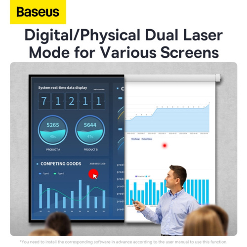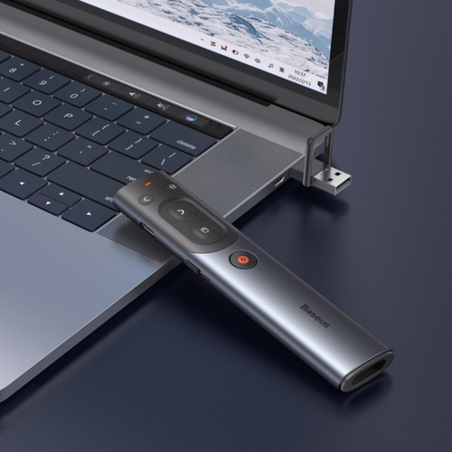 پرزنتر بی سیم بیسوس مدل AI Presenter WKCD020013 - BS-OH085 : برای اینکه ارائه بهتری در محیط کار، دانشگاه، کلاس درس و... داشته باشید، استفاده از وسایل حرفهای و مناسب نیز شرطی است که میتواند کمک کننده شما باشد و سطح ارائه شما بسیار بالاتر ببرد. به وسیله پوینتر و پرزنتر بیسوس میتوانید به خوبی این کار را انجام داده و بدون هیچ مشکلی ارائه خود را در سطح کیفی بالایی به انجام برسانید. کمپانی بیسوس با ارائه پوینتر و پرزنتر شارژی بیسوس Baseus Red Laser Wireless Multimedia Presenter WKCD020013 به خوبی میتواند ارائه شما را در بهترین شکل خود پیش ببرد. شما امکان این را دارید که با استفاده از کلیدها و لیزری که روی دستگاه پرزنتر قرار داده شده است، به خوبی ارائه خود را کنترل کرده و مطالب خود را به بهترین شیوه به مخاطبین منتقل کنید. منبع انرژی ریموت از طریق کایل تایپ سی شارژ می شود