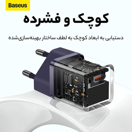 شارژر دیواری 30 وات بیسوس مدل GAN5 mini 30W به همراه کابل تبدیل USB-C
