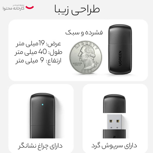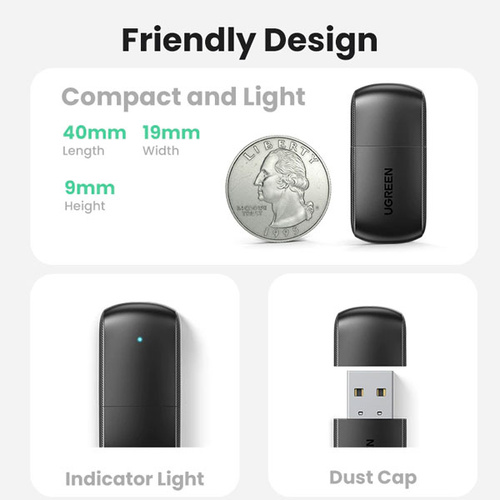 کارت شبکه بی سیم یوگرین مدل CM448 - 20204 (دانگل وای فای) AC650 11ac Dual-Band، یکی از محصولات باکیفیت و کاربردی برند نام آشنا و محبوب یوگرین است. یوگرین از شرکتهای معتبر و شناخته شده در زمینهی تولید محصولاتی نظیر اقلام جانبی کامپیوتر و شبکه است و این مدل از محصولات آن با استفاده از پورت USB به کامپیوتر وصل میشود و امکانات شبکهی بیسیم را در اختیار کامپیوتر میگذارد. این محصول برای کسانی که امکان نصب کارت شبکهی اینترنال را برای لپ تاپ یا کامپیوتر خود ندارند گزینهی مناسبی است و برای استفاده از آن نیازی به باز کردن کیس کامپیوتر یا لپتاپ نیست و کامپیوترهای فاقد شبکهی بیسیم داخلی میتوانند با تهیهی یک کارت شبکهی بیسیم نظیر مدل CM448-20204 و اتصال آن به پورت USB به صورت بیسیم از اینترنت استفاده کنند. شبکهی بیسیم ایجادشده، از استانداردهای امنیتی WPA/WPA2، WPA-PSK/WPA2-PSK، 64/128-bit WEP و Wi-Fi Protected Setup پشتیبانی میکند و امنیت لازم برای انتقال فایل و استفاده از اینترنت را برای کاربران به همراه دارد. شبکهی بیسیمی که توسط این کارت شبکه ایجاد میشود، از استاندارد IEEE 802.11a/b/g/n/ac پشتیبانی میکند. این کارت شبکه با اکثر سیستمعاملهای موجود مانند Mac OS، Linux و ویندوز 7/8/10 سازگاری دارد.