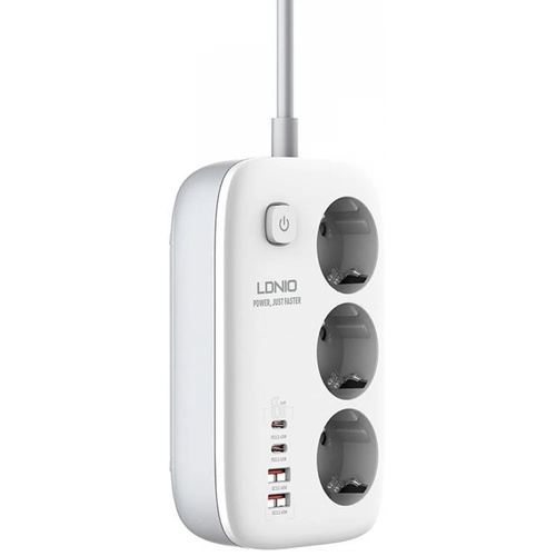 شارژر 65 وات و چندراهی برق الدینیو مدل ldnio SE3436 ,امروزه به دلیل اینکه از وسایل برقی بسیار زیادی در خانهها استفاده میشود، همه ما با کمبود پریز برق در منازل و محل کار خود مواجه هستیم. چندراهی برق الدینیو مدل 3436 محصولی از برند معتبر الدینیو است که میتواند نیاز شما را در این زمینه رفع کند. برای این محصول 3 پریز برق EU ، دو پورت USB ( قابلیت پشتیبانی از QC3.0 ) ، دو پورت Type-C ( قابلیت پشتیبانی از PD ) و یک دکمه خاموش و روشن در نظر گرفته شده است. در ساخت این چندراهی از پلاستیک بسیار باکیفیت پلی کربنات استفاده شده که تا حرارت بسیار بالا مقاوم است. همچنین این چندراهی مجهز به کابل 2 متری بسیار باکیفیت است که استفاده از آن را بسیار ساده می کند.