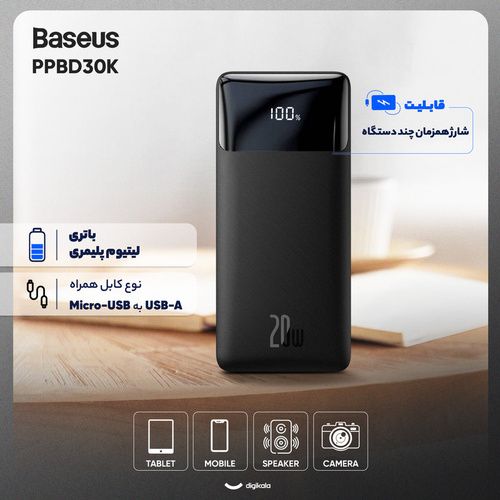 خرید اینترنتی پاوربانک 20 وات بیسوس مدل PPBD30K ظرفیت 30000 میلی آمپر ساعت با رنگبندی به همراه مقایسه، بررسی مشخصات و لیست قیمت امروز در فروشگاه اینترنتی شبکه طلایی