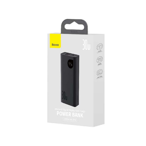 پاوربانک BASEUS مدل PPADM2-10 با ظرفیت 10000mAh و توان 30 وات، دارای فناوری شارژ سریع PD و QC3.0، دو پورت خروجی USB و یک پورت ورودی/خروجی Type-C، نمایشگر LED برای نمایش وضعیت شارژ باتری، و بدنهای مقاوم از جنس پلاستیک ABS و پلی کربنات است.
